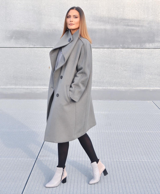 KAKI BUTTON UP WOOL COAT